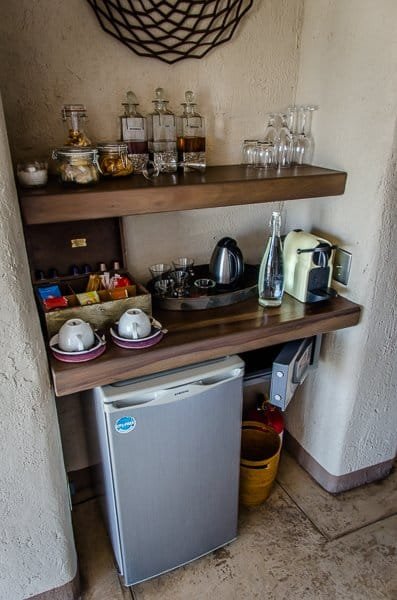 You’ll find coffee and tea making facilities as well as snacks and a fully-stocked fridge. All drinks in the room are complimentary – a fact that I only discovered when I left. This is probably just as well as it would have been easy to go a little nuts after such a long and hot drive.