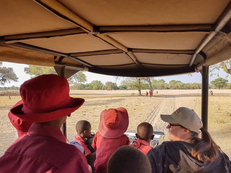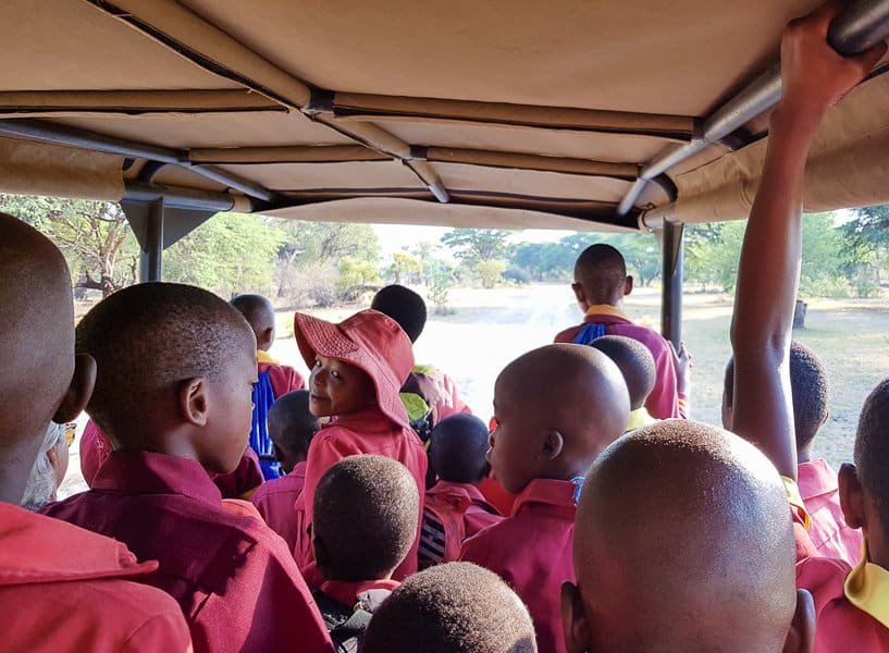 You wake up early and grab a bite to eat before setting off in the open 4WD to do the school run. Children in the area walk miles – often literally – get to Ngamo village and the school of the same name. You can help as many as can fit into the vehicle by giving them a lift – and it’s a LOT of fun!